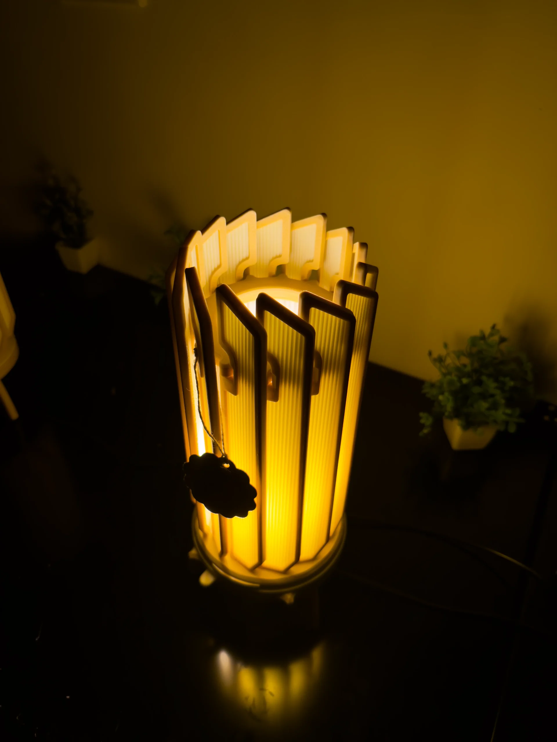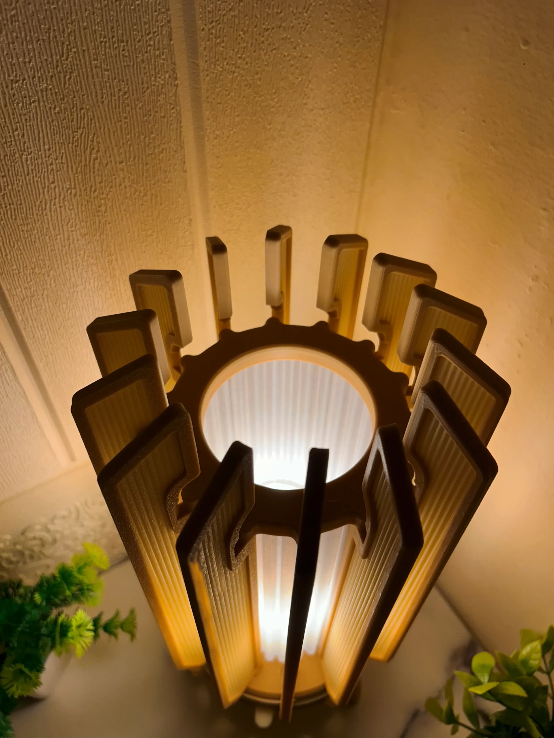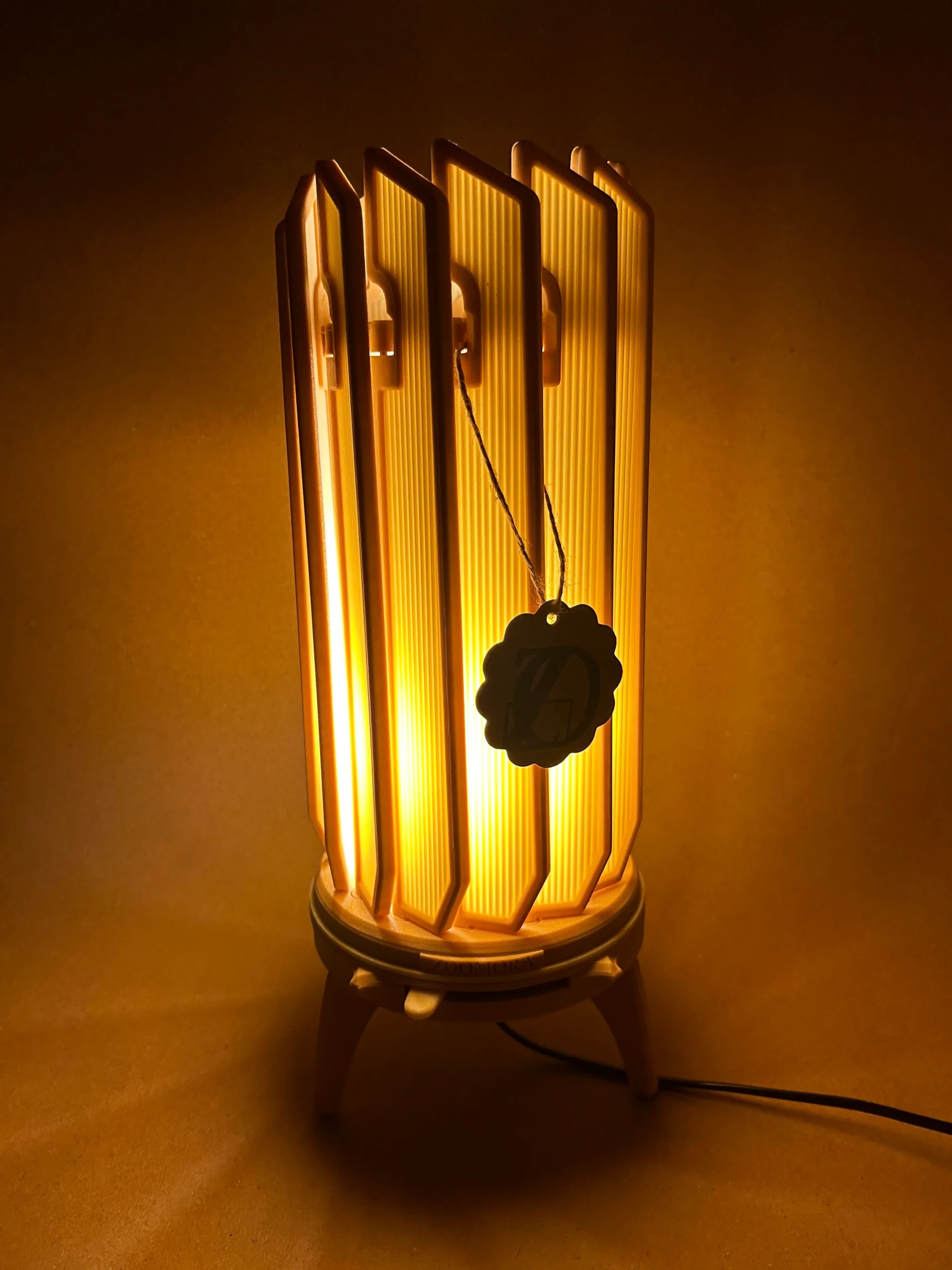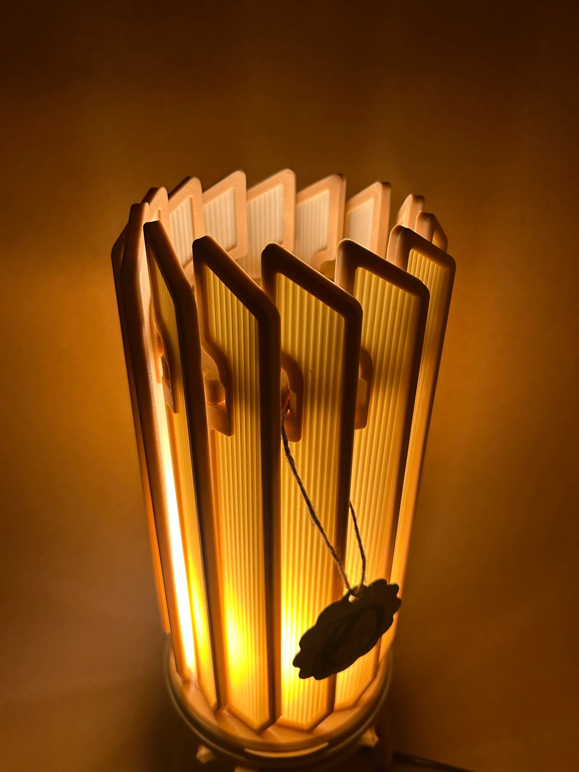 This lamp combines 3d printing and metal hardware for strength and stability. The movement is contagious, perfect for fidgeting leaving you mesmerized by the casting of light and shadow.